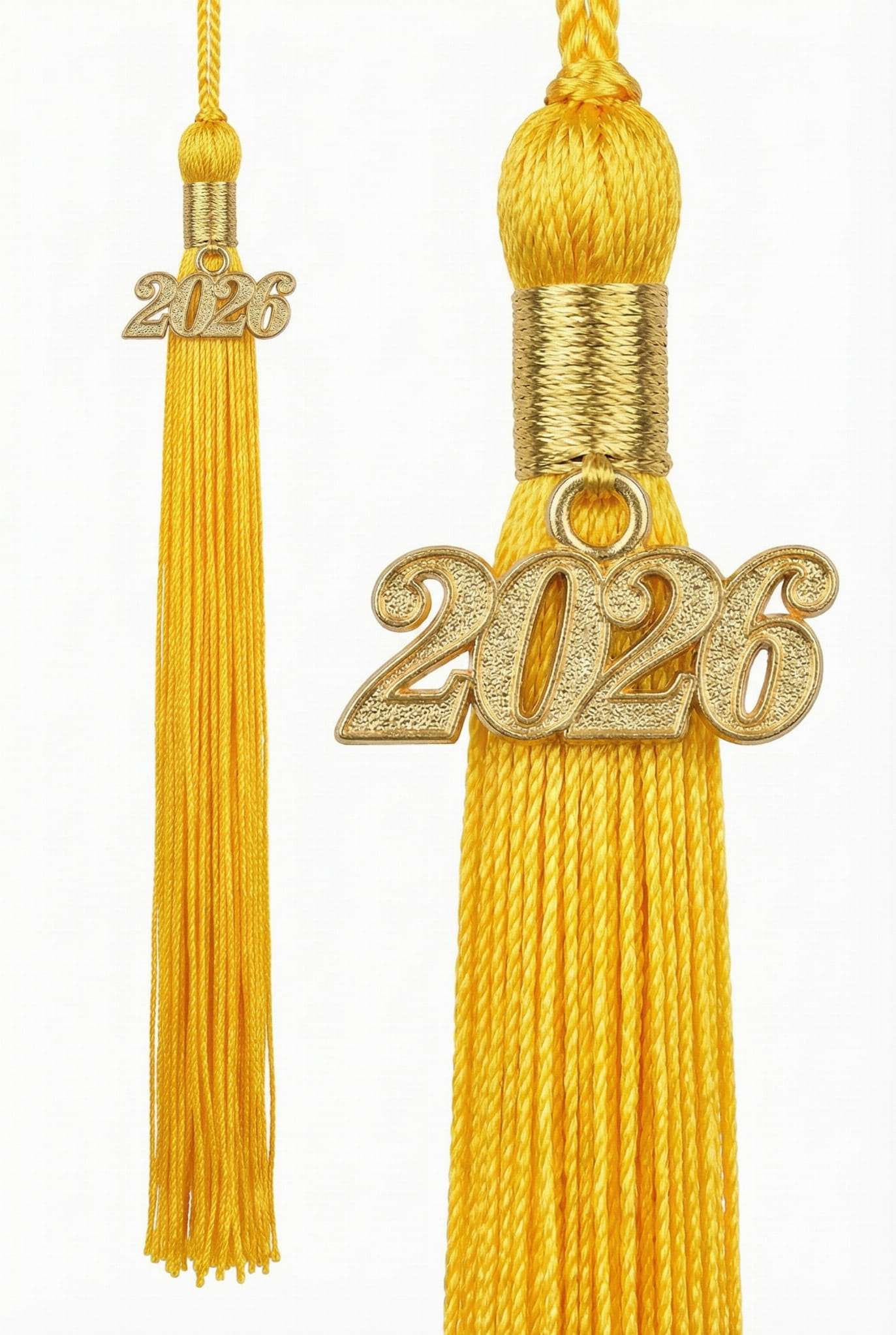 Официална жълта академична шапка за тази година с пискюл и медальон